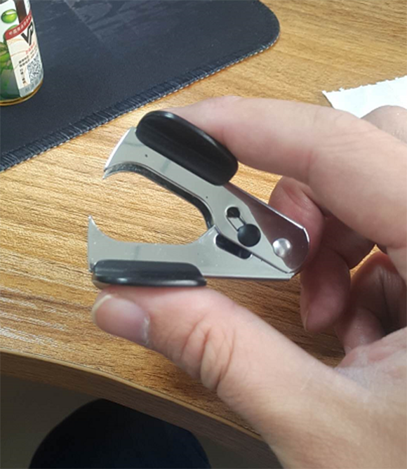 首先,準備一個起訂器,在文具店就可以買到。找不到也可以用美工刀之類的薄點硬點的鐵片。