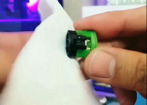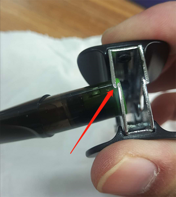 第二、將起訂器固定在彈的底部,夾住霧化器,然后拔出來,操作需要有點力度,但不能用力過度,否則會損壞霧化器。