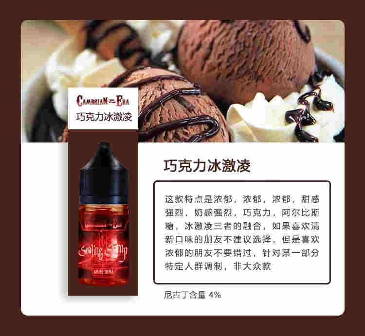 這款特點是濃郁,濃郁,濃郁,甜感強烈,奶感強烈,巧克力,阿爾比斯糖,冰激凌三者的融合,如果喜歡清新口味的朋友不建議選擇,但是喜歡濃郁的朋友不要錯過,針對某一部分特定人群調制,非大眾款尼古丁含量4%