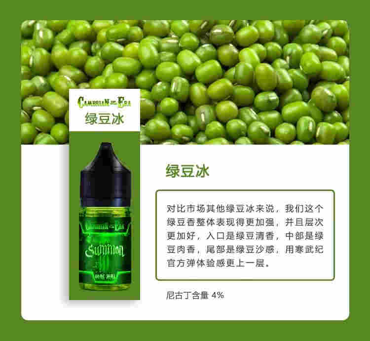 對比市場其他綠豆冰來說,我們這個綠豆香整體表現得更加強,并且層次豆肉香,尾部是綠豆沙感,用寒武紀官方彈體驗感更上一層尼古丁含量4%夏日芒果純純的熟芒果肉香,適當加點奶香去輔助,延長了留香時間,加強了飽滿感、綿柔感,以及芬芳了周邊環境,當然,這個夏天缺少不了主流的冰鎮,口感正好尼古丁含量4%