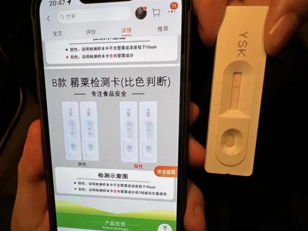 “專業機構的檢測儀器是經過專業批準的,相比網購的快檢試劑盒質量更加可信?!标悤匀A建議,如果消費者有疑慮,建議還是到醫院或專業機構進行檢測,專業機構出具的檢測報告才更有說服力。