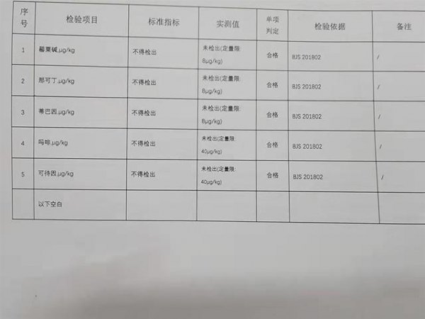 4月2日,漢陽區市場監管局相關負責人回復稱,該牛肉面館的樣本顯示為陰性。記者在檢測報告上看到,罌粟堿、那可丁、蒂巴因、嗎啡、可待因等5項指標,均顯示為未檢出。