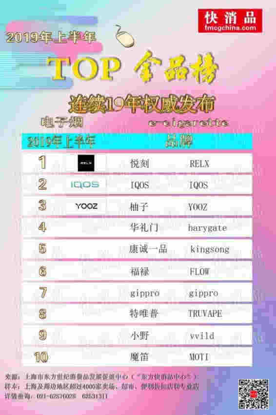 《快消品》獨家監測線上零售數據,今年新增了電子煙品類,為您帶來“2019年上半年線上TOP金品榜——電子煙”。