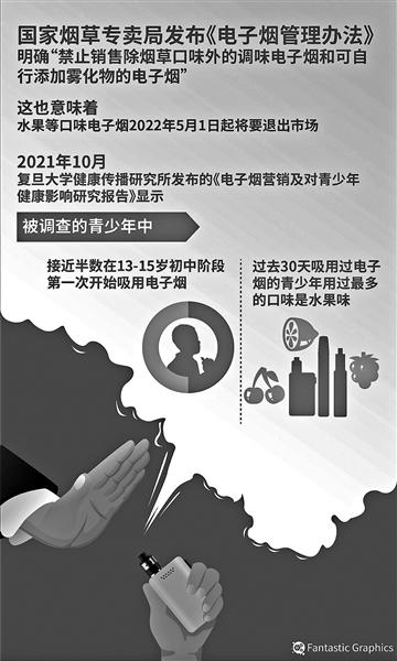 《電子煙管理辦法》今年5月1日正式實施。其中,管理辦法明確指出禁止銷售除煙草口味外的調味電子煙。北京青年報記者了解到,目前市面上的電子煙產品主打仍是水果口味,一些商家借著即將禁售,玩起了“囤貨漲價”的花樣。面對電子煙即將“禁甜”,一些商家還想出了“換馬甲”、暗示能私下交易的手段。