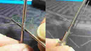 剪出兩根約8-9cm的0.32發熱絲,0.32的細絲比較軟,彈性比較大,因此繞制松繞線圈時也比較容易操作,繞制好兩個松繞線圈后,注意調整好線圈之間的間距。