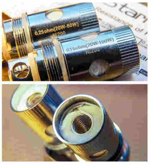 RBA霧化器底座上只有做絲臺,供使用者安裝線圈制作霧化芯。用戶需要使用發熱絲來繞制加熱線圈并固定在電極臺上。再將棉花從線圈中間穿過,氣流從線圈的兩側經過帶走煙霧。