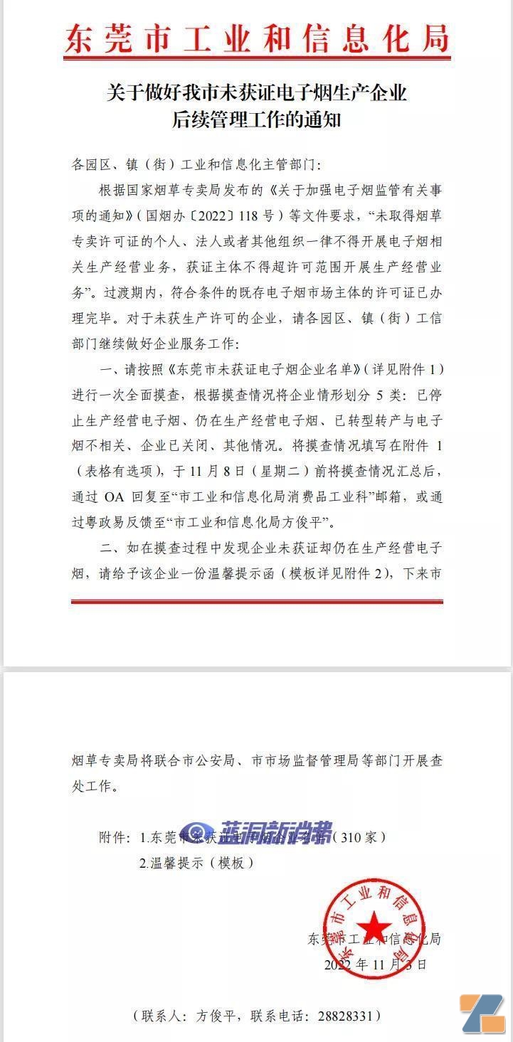 這也是繼東莞市工業和信息化局11月3日發布未獲證電子煙企業的后續管理工作通知后的深圳動作。