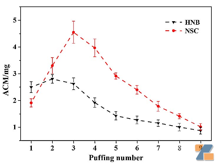 HNB與NSC構象下煙氣ACM逐口釋放趨勢
