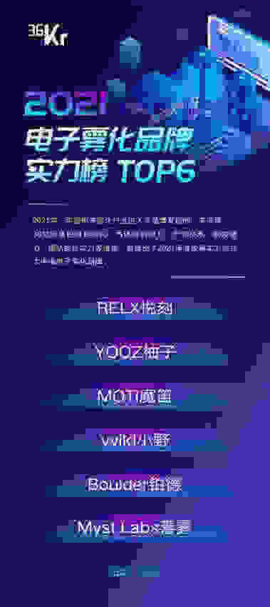 在過去近三年的觀察周期中,36氪持續跟進了中國電子霧化行業的發展歷程,并圍繞投融資情況、估值/市值、銷售網點、產品力、研發、團隊綜合實力等方面,遴選了2021年度最具實力的六大中國電子霧化品牌。