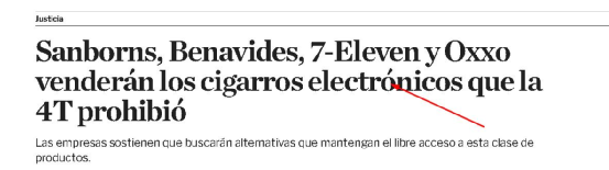 據墨西哥媒體報道,通過一項由企業推動的法律保護,包括Sanborns、Benavides、711和Oxxo在內的四家連鎖零售店將能夠自由地銷售電子煙產品,盡管墨西哥總統頒布了電子煙銷售禁令。這意味著菲莫國際將能夠在墨西哥自由分銷其電子煙產品?!禡ilenio》報紙在一篇報道中提到:“消息人士透露,Oxxo在2023年8月10日于墨西哥城第二行政法院獲得了最終判決?!边@些零售店表示,最近的判決凸顯了對電子煙市場進行監管的緊迫性,他們認為,這種監管將有益于消費者、商家和政府機構,因為它將確保所有產品的質量,減少非正規市場,并創造更透明和競爭激烈的市場。