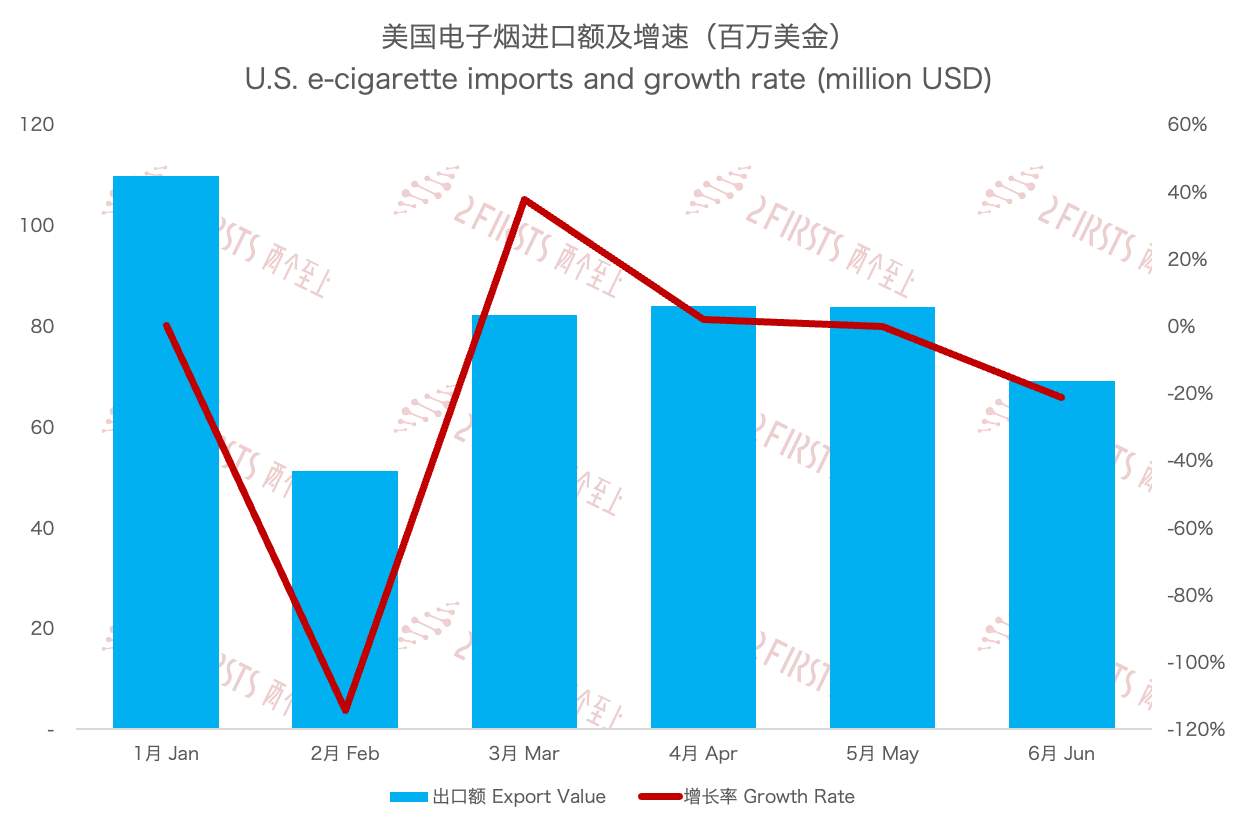 美國6月電子煙進口額6896萬美元 環比下降21.4%