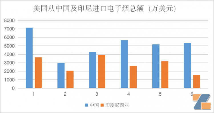 然而,根據美國貿易委員會公布的2023年6月的數據,情況似乎有了一些變化。數據顯示,2023年上半年,美國從中國進口的電子煙僅為63.7%,來自印度尼西亞(以下簡稱“印尼”)的電子煙則占據了其超過35%的份額。這意味著印尼已經超越其他國家,成為僅次于中國的第二大電子煙出口國。