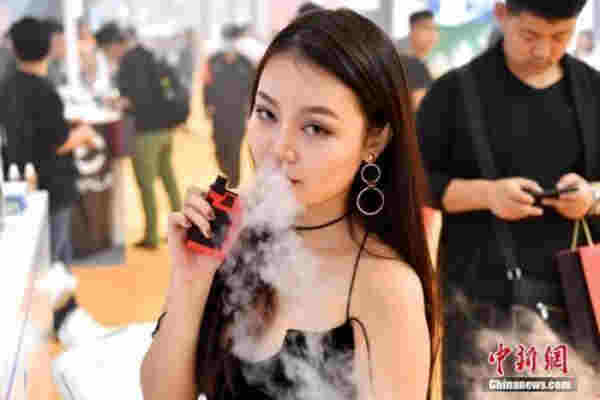 資料圖:美女手持電子煙體驗。 中新社