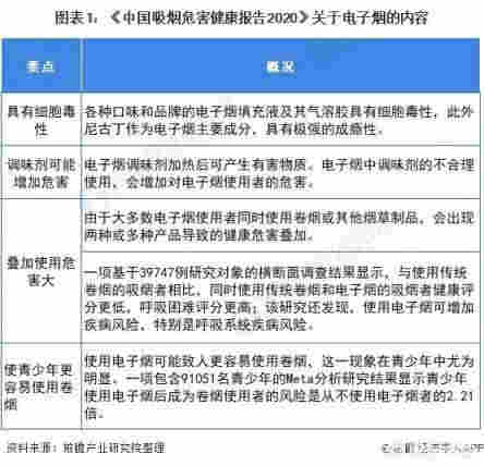 然而,2021年5月26日,國家衛生健康委在北京發布《中國吸煙危害健康報告2020》。與2012年原衛生部發布的舊版報告相比,《報告2020》新增加了電子煙的健康危害章節,指出“有充分證據表明電子煙是不安全的”。本文在官方首次明確電子煙不安全的背景下,進一步分析了中國電子煙行業發展現狀和發展前景。