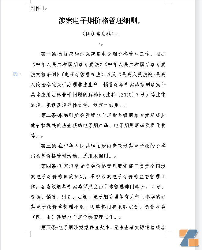 剛剛,一個電子煙新文件來了。 平時是否覺得,非統一平臺查獲的電子煙價格怎么定價?如今國家煙草局給出了文件,即為“電子煙定價13條”,涉案電子煙價格管理細則意見征求稿已經出來。 這對今后但凡市場查處非國標等各類無標準的電子煙,將有新的參考價格標準來衡量。而目前我國電子煙進入常態化監管階段,各級煙草專賣局將全面執行電子煙監管法律法規和政策性文件,依法依規查處各類違法違規行為。在電子煙案件執法查處工作中,涉案電子煙價格出具等工作也將直接關系到案件性質和當事人權益。 點擊輸入圖片描述(最多30字) (涉案電子煙價格細則來了) 對今后隨便銷售其他非國標電子煙,將有處罰定價的標準了。意見稿是請于2022年11月23日前(自發布之日起7個自然日)反饋意見,意味這段時間可以去建議。 而且所有的價格都是以“建議零售價”為標準,而不是所謂的批發價之類。 有什么亮點? 1、查獲電子煙未來這么定價。 按照細則指出,電子煙涉案案件查處中,無法查清實際銷售或者購買價格的,各省級煙草專賣局按本細則要求出具價格。 這基本明確了無法定價的,都按照這個細則定價。 而定價,可以通過違規產品的價值來定到底怎么處罰,其實對市場有很大的關系。 2、有品牌,但沒型號上架的這么定價。 細則指出,能查清產品品牌且該品牌在電子煙交易管理平臺上境內銷售,但無法查清產品型號或該型號不在電子煙交易管理平臺上境內銷售的,由查獲地的省級煙草專賣局按照查獲時該品牌上年度的全國平均建議零售價格出具。 言下之意就是,有品牌但無型號在交易平臺交易的,就按品牌的建議零售價定價。 點擊輸入圖片描述(最多30字) (有品牌無型號的,這么定價) 3、沒品牌的,按全國電子煙平均零售價定價。 辦法很明確了,該產品既沒有品牌,也沒有在統一平臺銷售的,由查獲地的省級煙草專賣局按照查獲時上年度電子煙產品全國平均建議零售價格出具。 說到底這類型基本是非國標電子煙。畢竟非國標電子煙不可能上線到統一平臺。 還有一種就是造假的電子煙,造假的電子煙,在統一平臺沒有任何的痕跡,也將按照全國平均售價來定價。 從這次的涉案電子煙價格管理細則可以看出,基本劃定了三種情形的定價。 核心看了下,基本是限定了三種“非國標”電子煙價格判定。同時也限定了國標電子煙違規定價問題。如果是國標違規,基本按照統一平臺的零售價來計算。 也可以想象下,市場上基本有幾種非國標。如不能上線統一平臺的,非國標標準的電子煙,造假電子煙等。 估計有了這個規則后,未來電子煙一旦被查處,將可以很快給違法的電子煙價值給了判定,也對違法事件的嚴重與否有了一個新標準。 而且按照現在的法律,多少貨值電子煙違規會判刑?如何定? 筆者查了下,依據我國相關法律的規定,非法經營電子煙經營所得達到13萬的,會構成非法經營罪,是屬于情節嚴重的情形,可以處五年以下有期徒刑或者拘役。情節特別嚴重的,處五年以上有期徒刑,并處違法所得一倍以上五倍以下罰金或者沒收財產。 不要看沒關系,如平時不通過平臺拿貨的,就涉及非法電子煙交易,自然有查處的情形等。 有了法律依據后,可見今后的中國電子煙法律已經在各大環節是越來越完善,而且很細致,對未來電子煙規范更有法可依。 下面是《涉案電子煙價格管理細則》全文。 點擊輸入圖片描述(最多30字)