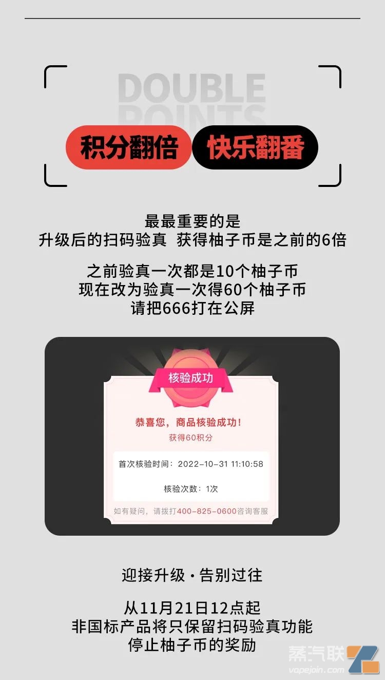 昨日,YOOZ柚子官方微信公眾號【柚子會員】發布了一篇內容“每一次升級與改變,都只為我們更好的遇見”,展示了目前線下電子煙門店新國標口味的使用、掃碼積分以及日常積分兌換好禮的場景。