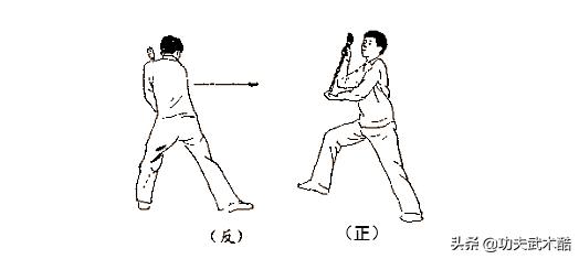 此動要領:轉體時,可先拉右腳向左后斜退一步,待雙腳穩定后,上身立即向右旋轉,雙手持煙筸順勢向后(轉體后為右前)捅去;轉體時,樁步宜低;煙筸捅時,樁步微高,上身略往前傾。