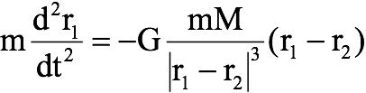 牛頓的萬有引力理論 (約成于1684年) 是滿足伽利略相對論的??疾煲粋€質量為m的小物體 (設想是一個西瓜) ,其位置矢量為r1,被一個質量為M的大物體 (設想是地球),其位置矢量為r2,所吸引的問題。由于m<<M,可以設想成是西瓜向著不動的地球下落。西瓜受力為西瓜-地球之間的萬有引力,