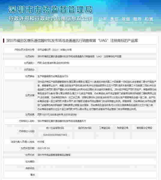 近日,深圳市市場監督管理局福田監管局發布行政處罰信息(深市監福處罰〔2023〕華強北56號),涉及深圳市福田區康樂通信器材批發市場鴻凌通通訊行銷售假冒“UAG”注冊商標的產品案。