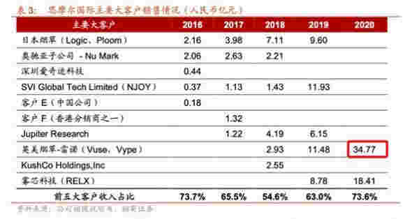 公開資料顯示,在2020年思摩爾國際的收入結構中,僅英美煙草-雷諾就貢獻了超34億元收入,占收入近 35%。