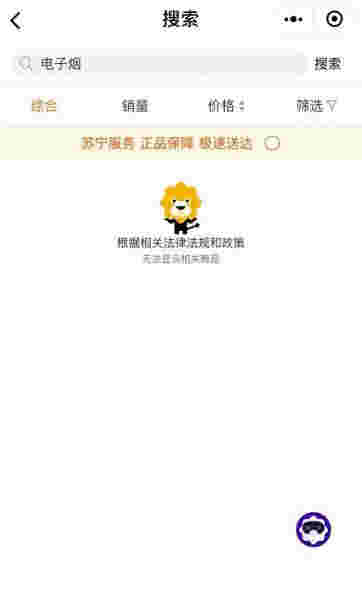 “315”晚會曝光了電子煙煙油問題之后,最先作出反饋的是電商平臺們。在“315”晚會電子煙部分播出后,蘇寧、天貓、京東等電商平臺上基本上已經搜不到關鍵字“電子煙”。雖然在3月16日,大部分電商平臺已經“解禁”,但截至發稿前,記者在蘇寧搜索“電子煙”,仍然沒有結果。
