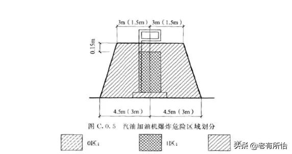 根據此規定,配置了油氣回收裝置的汽油加油機,其地面半徑3米范圍內,高于加油機0.15米處半徑1.5米范圍內的圓臺形空間內為爆炸性區域2區。